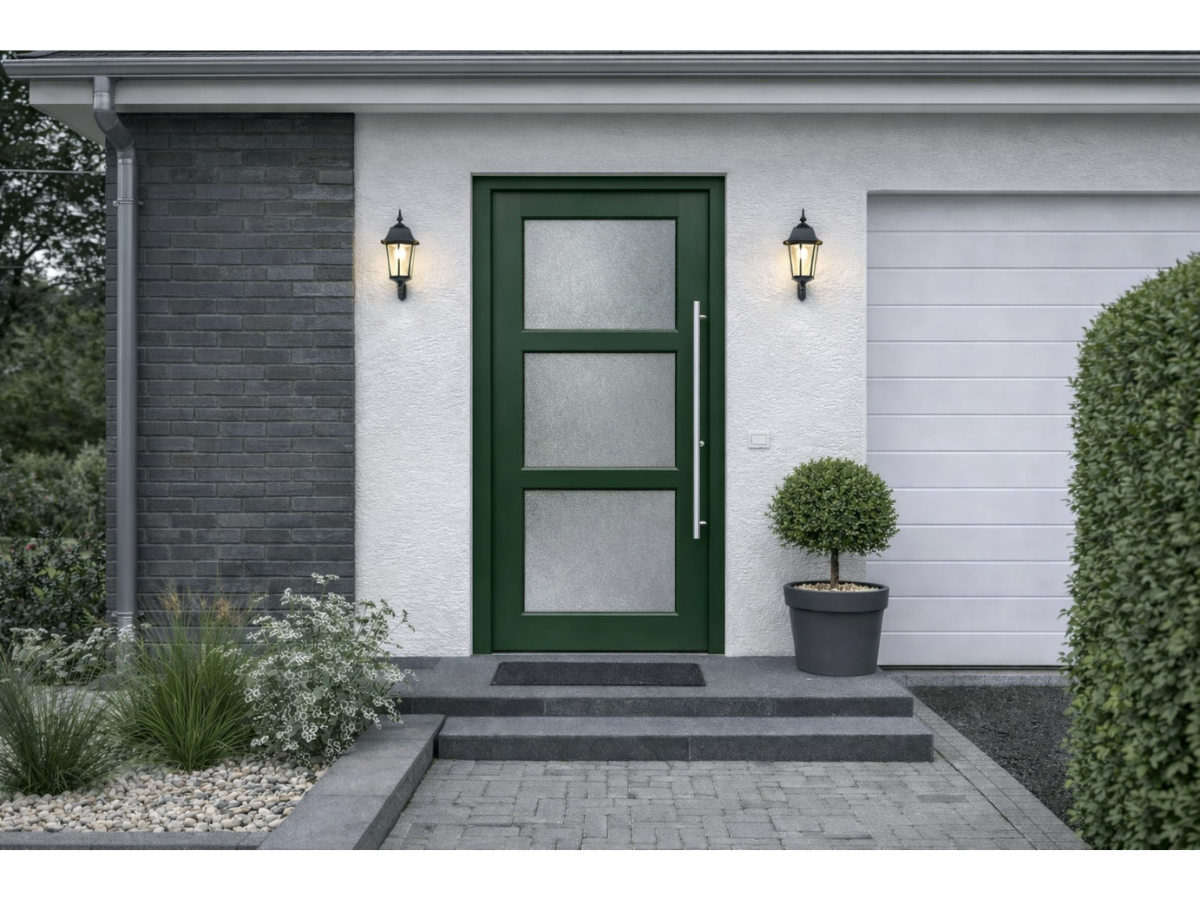 Das schmale Glaselement bringt Tageslicht in den Flur, ohne Privatsphäre zu verlieren, und verleiht der Tür eine elegante Wirkung. Die Haustür wird auf Maß gefertigt, ab 20 Arbeitstagen montagebereit geliefert und transportsicher an Ihre Wunschadresse versendet.